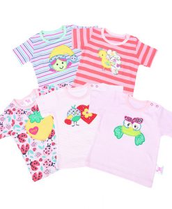 Combo 5 Áo Tay Ngắn Bé Gái Dobi ATN02 mang đến cho bé gái bộ 5 chiếc áo ngắn tay xinh xắn, trên mỗi chiếc áo là hình thêu riêng biệt đáng yêu. Được may bằng cotton 100%, áo mềm mại và không làm tổn hại da bé. Đặc biệt, trên vai áo còn đính nút bấm giúp mẹ dễ dàng thay đồ cho bé.